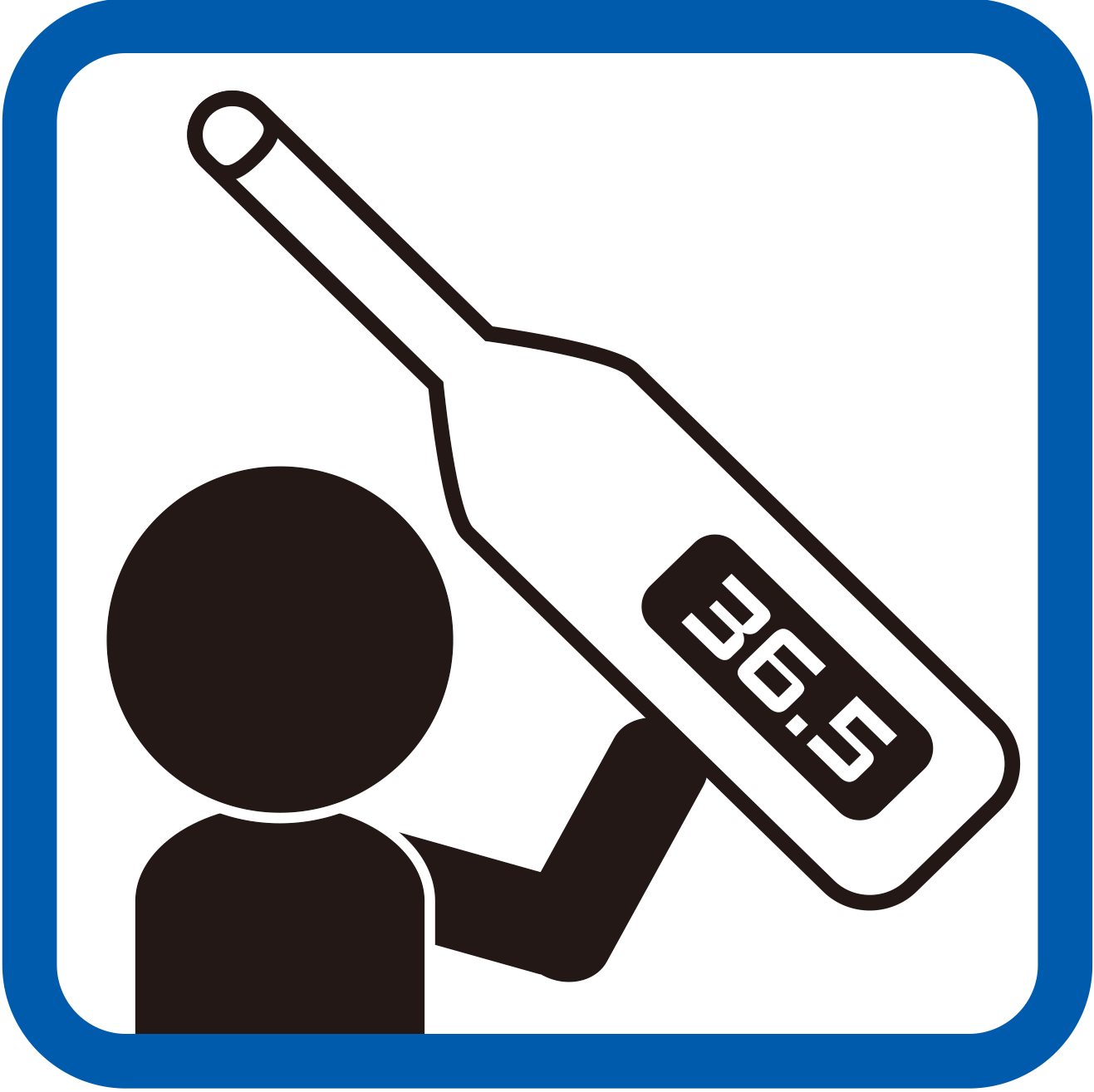 施設内に設置しておりますカメラ型の検温装置をご利用ください。 - 体調が優れない場合にはすぐにスタッフへお申し付けください。